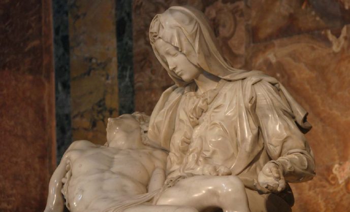 Накануне праздника восьмого марта стал невольно копаться в своих воспоминаниях. Дело в том, что меня воспитывали две замечательные женщины: мать и бабушка. И, по сути дела, у меня было две матери, которые не воспитывали из меня неженку. Когда я уходил во двор, чтобы с кем-то биться, что-то отстаивать, то бабушка лишь крестила меня со спины. Так провожали на фронт. И я бился, а на вопрос, с кем, коротко отвечал: со всеми. Поэтому, что такое материнская любовь, я испытал сполна.Помните, в соборе Св. Петра в центре Рима и Ватикана, сразу направо от входа, расположена в специальной нише статуя...