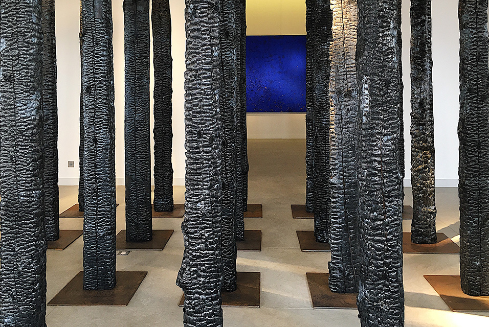 Экспозиция Пастора разделена на несколько комнат, главной из которых является первая. В ней художник показал инсталляцию в виде вымершего после пожара леса. Она состоит из 28 кальцинированных черных стволов, которые одновременно пугают зрителей и напоминают о том, как хрупка природа.