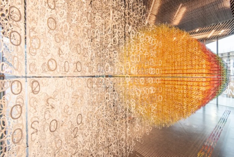 Французских архитектор и дизайнер Эммануэль Море представила необычную инсталляцию в лондонской галерее NOW. Массивная конструкция состоит из разноцветных слоев, которые образуют небольшие числа. Работа получила название «Отрезок времени». Для ее создания художника использовала 168,000 цифр.