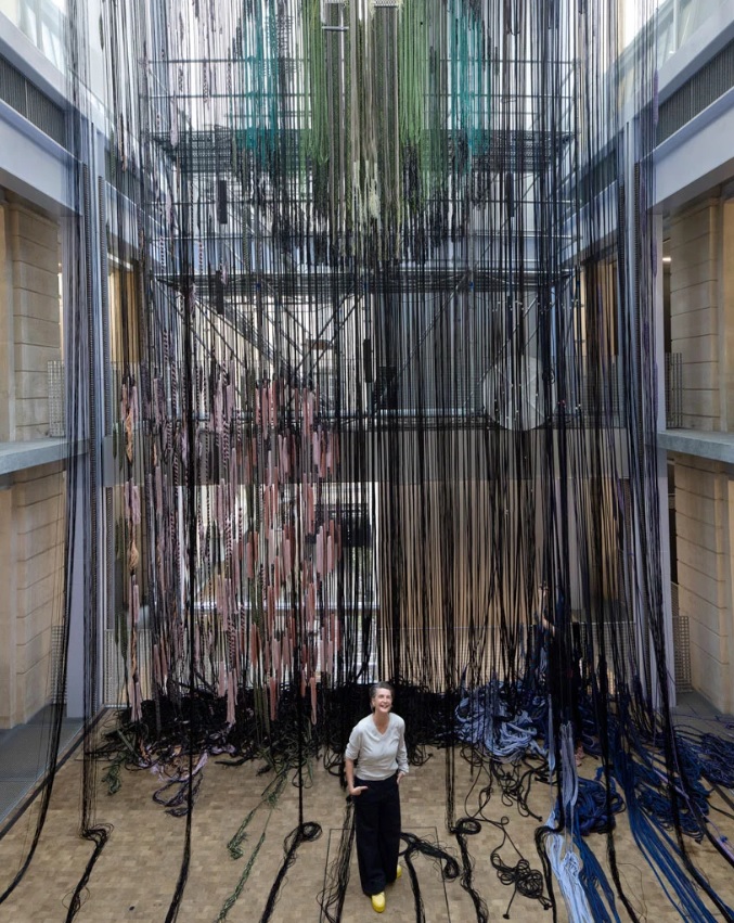 Парижская галерея современного искусства Lafayette Anticipations представила экспериментальную инсталляцию от голландского промышленного дизайнера Хелла Йонгериус. Ее масштабный проект получил название «Переплетать». Он представляет собой инсталляцию из текстиля, занимающую все пространство галереи.