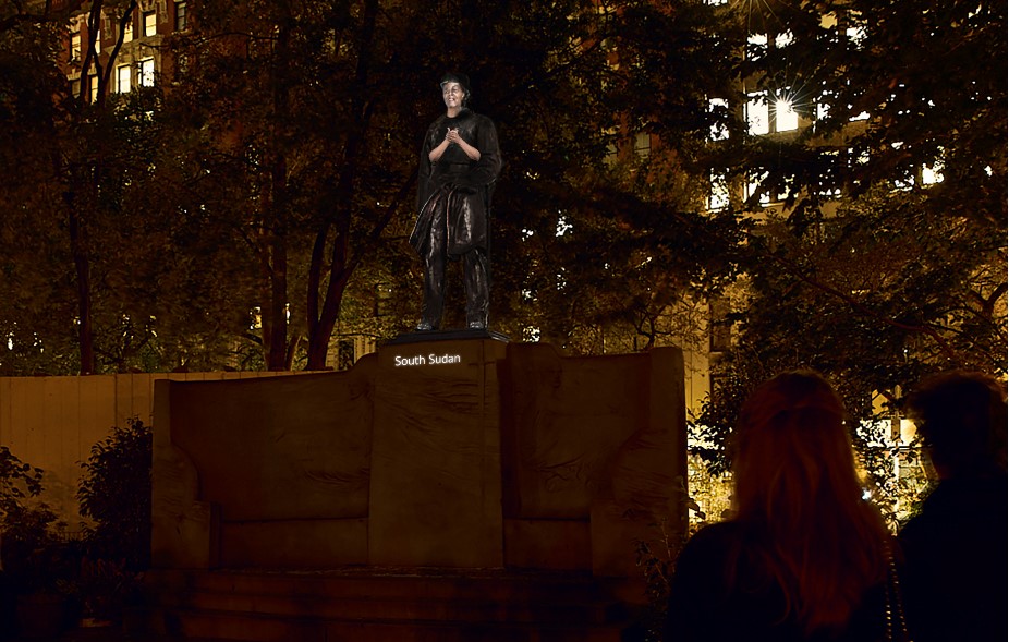 Работа художника расскажет, что заставило беженцев из Сирии, Сомали и Гватемалы покинуть дома, отразит тяготы их путешествия и проблемы в жизни на новых местах. Инсталляция длительностью 30 минут будет проецироваться на памятник каждый вечер с января по май.
