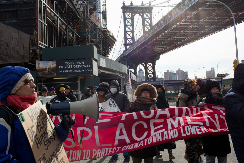 Группа художников вместе с жителями района Two Bridges в Нью-Йорке выиграли суд против компании-застройщика, которая планировала построить в квартале небоскребы с элитным жильем. Местные жители протестовали, так как здания могли нарушить экологическую обстановку в районе. Однако они ничего не могли сделать, пока им на помощь не пришли художники из объединения «Искусство против перестановок».