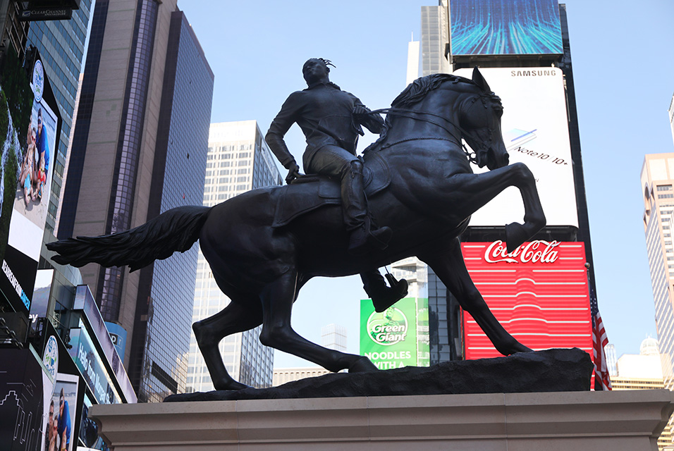 Огромная бронзовая скульптура всадника появилась на Таймс-сквер. Монументальная работа под названием «Слухи о войне» является первым публичным произведением известного афроамериканского художника Кьянде Уайли. Автор ранее был известен прежде всего за свои портреты выдающихся африканских и американских личностей.