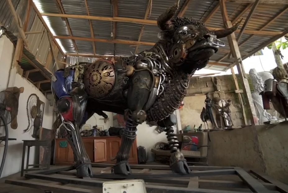 Нигерийский художник Дотун Попула представил новые грандиозные произведения в своей мастерской. Автор создает огромные скульптуры из переработанных отходов. Материалами ему служат выброшенные предметы из метала, канистры из пластика, домашняя утварь и прочий мусор, которого, по словам художника, в Нигерии слишком много.