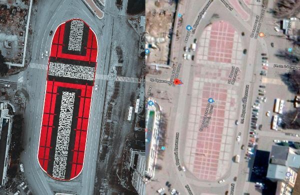 Первая версия арт-объекта представляла собой огромный черный крест с каллиграфией, в который была вписана цитата Малевича. Часть работы была повреждена службой по ремонту дороги. Художник вызвался восстановить работу, а власти Екатеринбурга пообещали поспособствовать этому. Но против высказались верующие, которые устроили на площади акцию протеста.