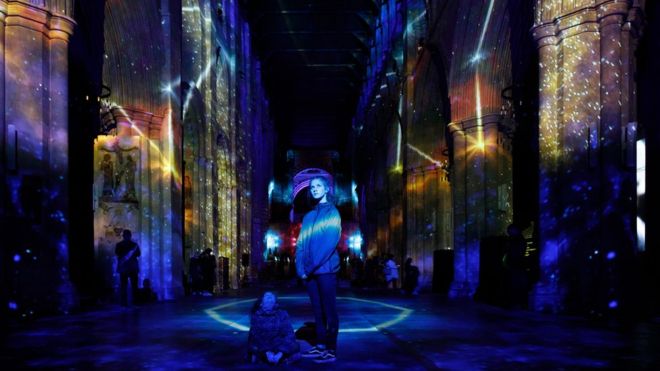 В английском соборе в Сент-Олбансе прошло уникальное световое шоу. Проект «Космическое путешествие» приурочен к 50-летней годовщине высадки на Луну «Аполлона-11». С помощью современных технологий проекции авторы проекта решили воссоздать космическое пространство внутри старинного здания.