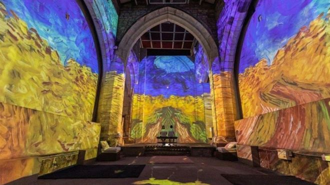 Уникальная световая выставка по мотивам произведений Винсента ван Гога добралась до британского Лестера. В здании старинной Церкви Всех Святых установили проекционное оборудование, которое перенесет на стены храма анимированные изображения известнейших картин ван Гога. Световое шоу продлится в городе до 5 мая.