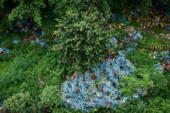 Мультимедиа Арт Музей, Москва представляет выставку «Мест нет» китайского фотографа Ву Гоюна. Она включает снимки, которые Гоюн сделал на кладбищах прокатных велосипедов по всему Китаю. За несколько лет они практически поглотили страну на волне пропаганды здорового образа жизни и заботы об окружающей среде.