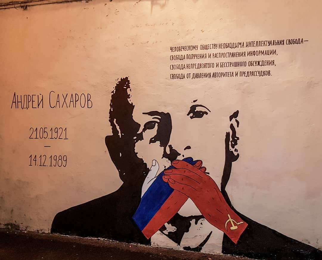 Арт-группа «Явь» представила в Санкт-Петербурге новое произведение стрит-арта. Художники посвятили работу академику Андрею Сахарову. Граффити приурочено к 30-летию со дня смерти знаменитого ученого и правозащитника. Произведение появилось во двор на Набережной Обводного канала.