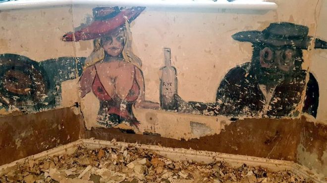 В нижних помещениях бристольского дома престарелых обнаружены настенные росписи времен Второй мировой войны. Работники дома наткнулись на рисунки, когда проводили ремонт в спальных помещениях. На одной из стен была изображена женщина в откровенном платье с бутылкой виски в руке.